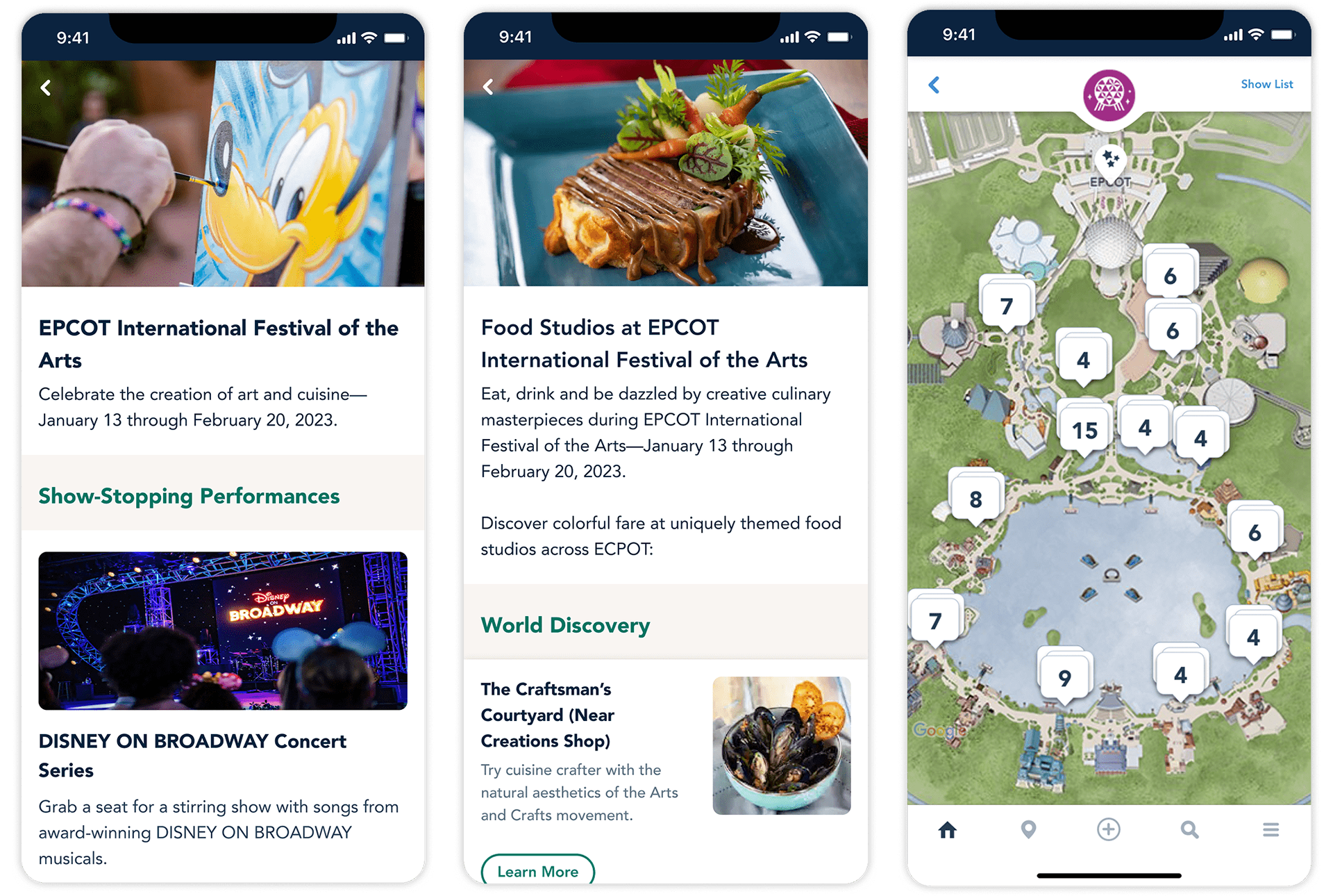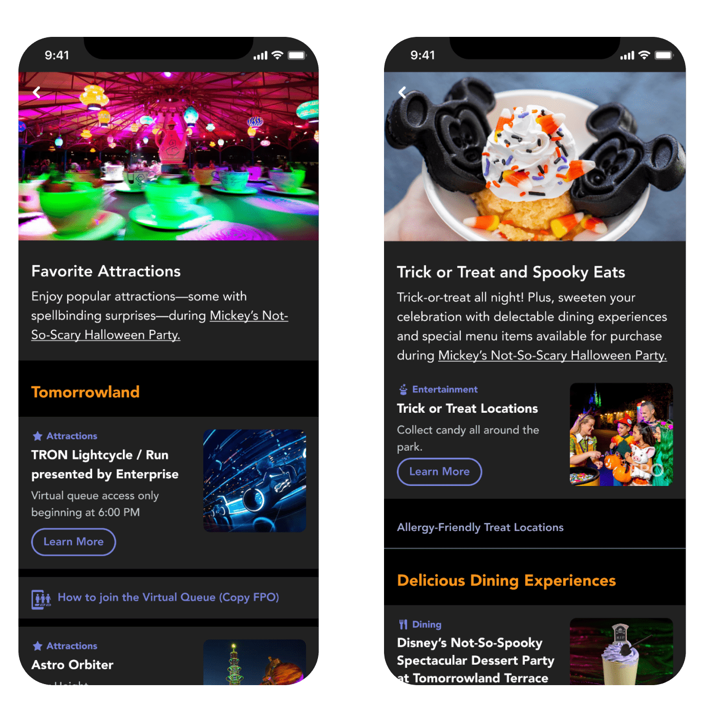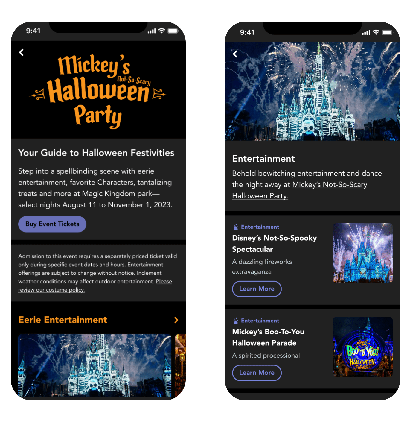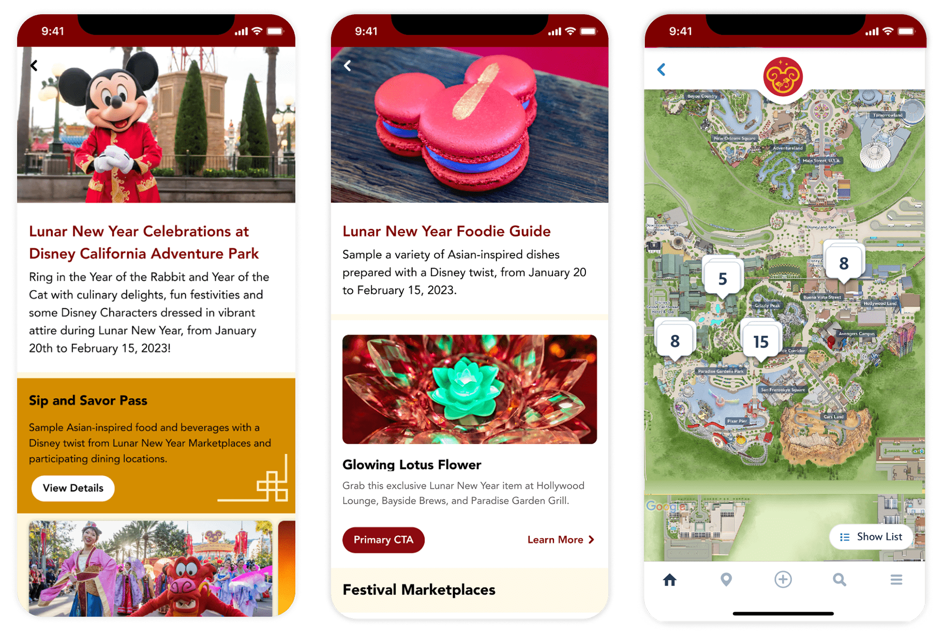 I provided visual design for many in-app event guides for Walt Disney World and Disneyland in 2022 and 2023. Each guide featured specialty food, beverages, entertainment, and exclusive merchandise.