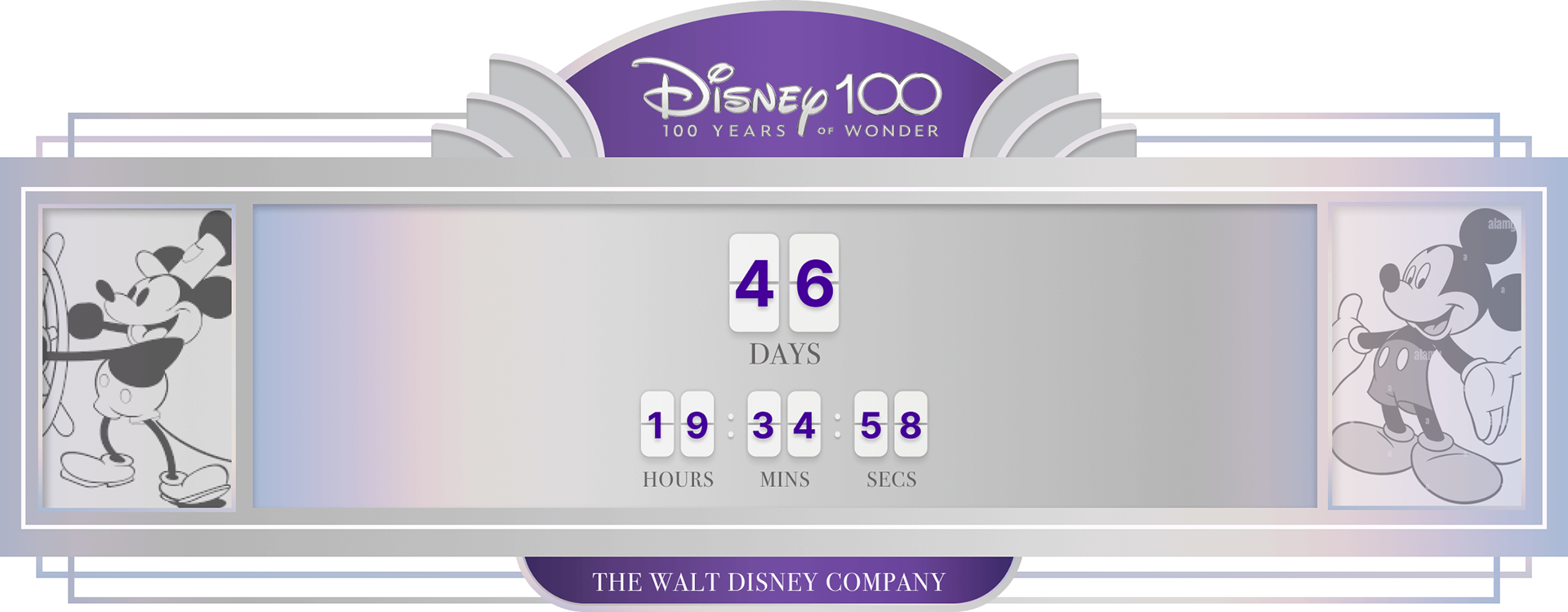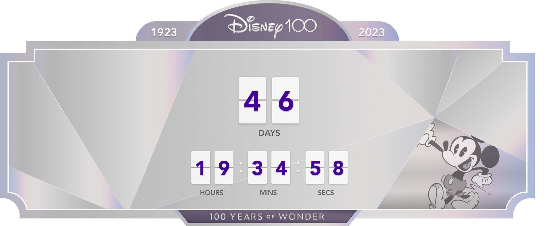 The Walt Disney Company reached its 100th anniversary in 2023 and a campaign was created to mark the occasion and celebration. My role in the campaign was to design and illustrate a web-based digital clock that would count down to the start of the anniversary celebration.