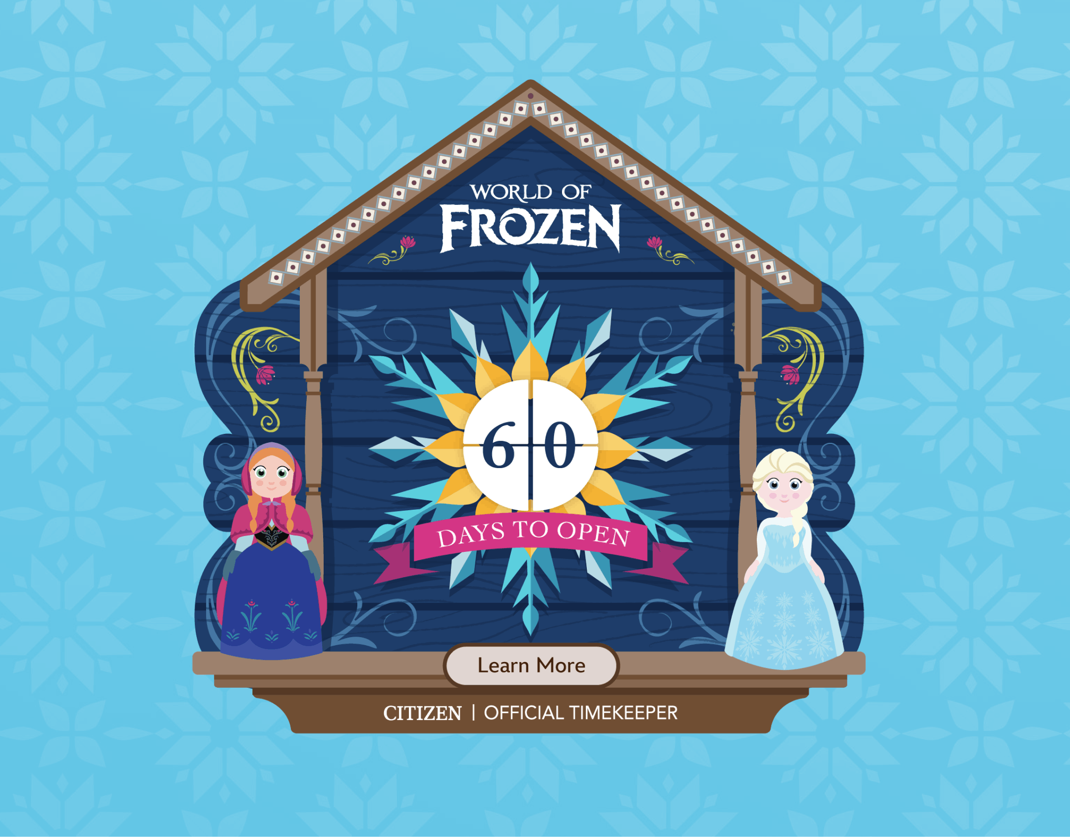 A countdown clock to the World of Frozen's grand opening at Hong Kong Disneyland