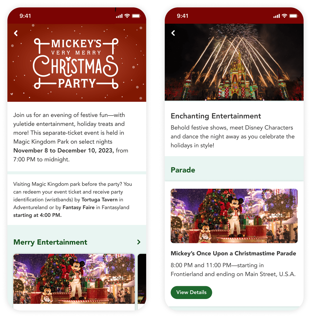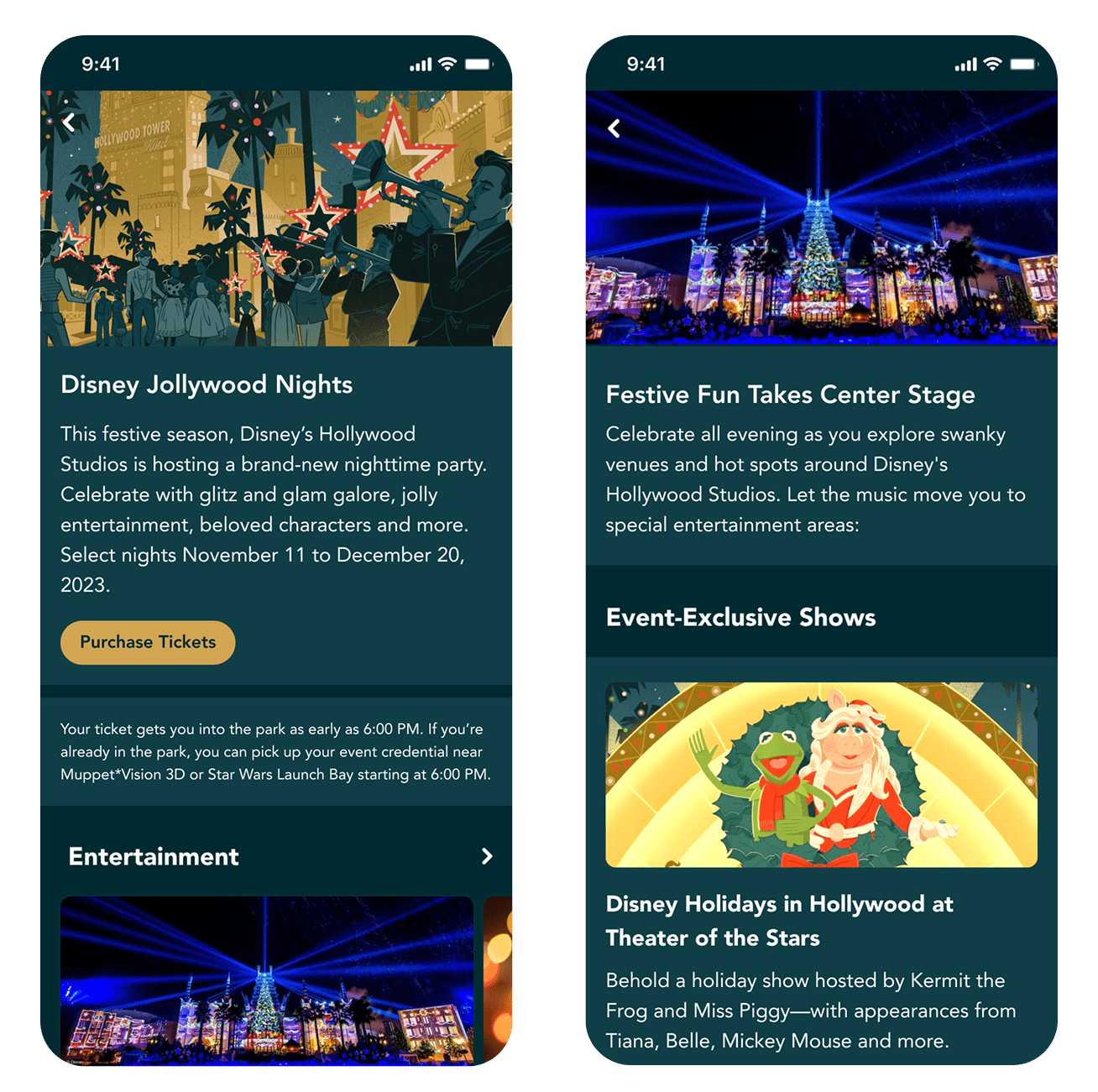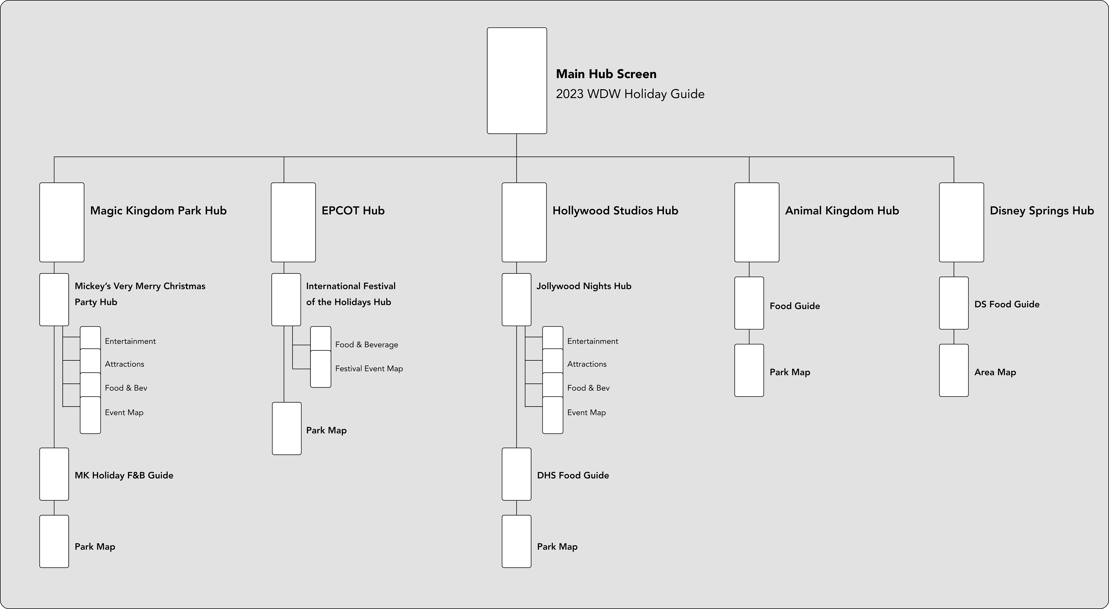 Above is the final color palette of the 2023 in-app digital guide to the holidays at Walt Disney World. Click below for a prototype of the entire product.
