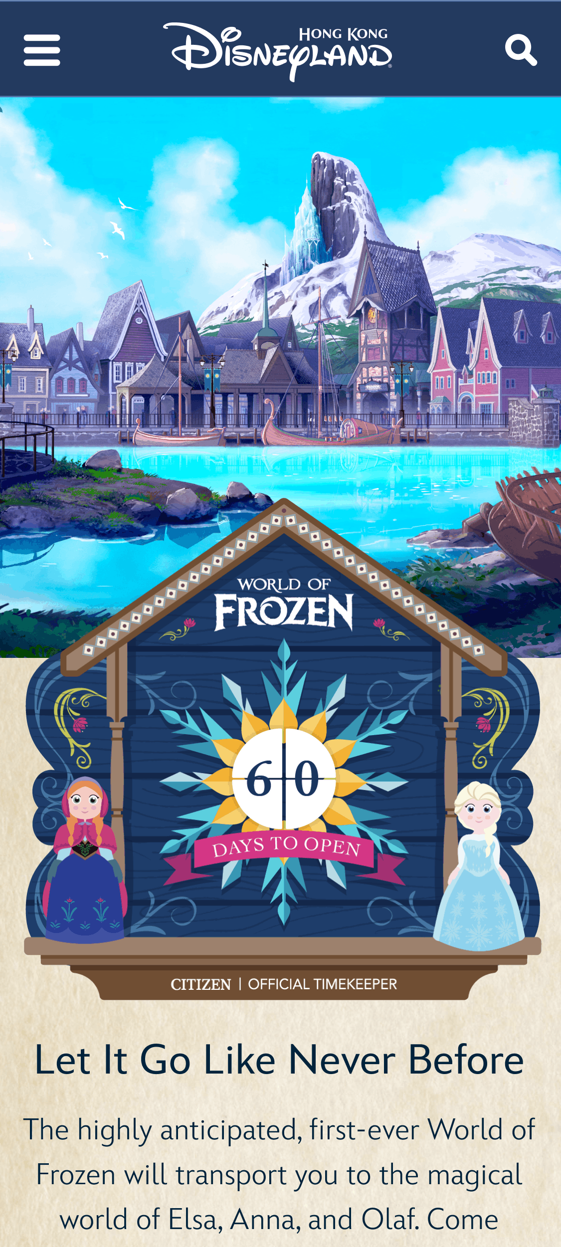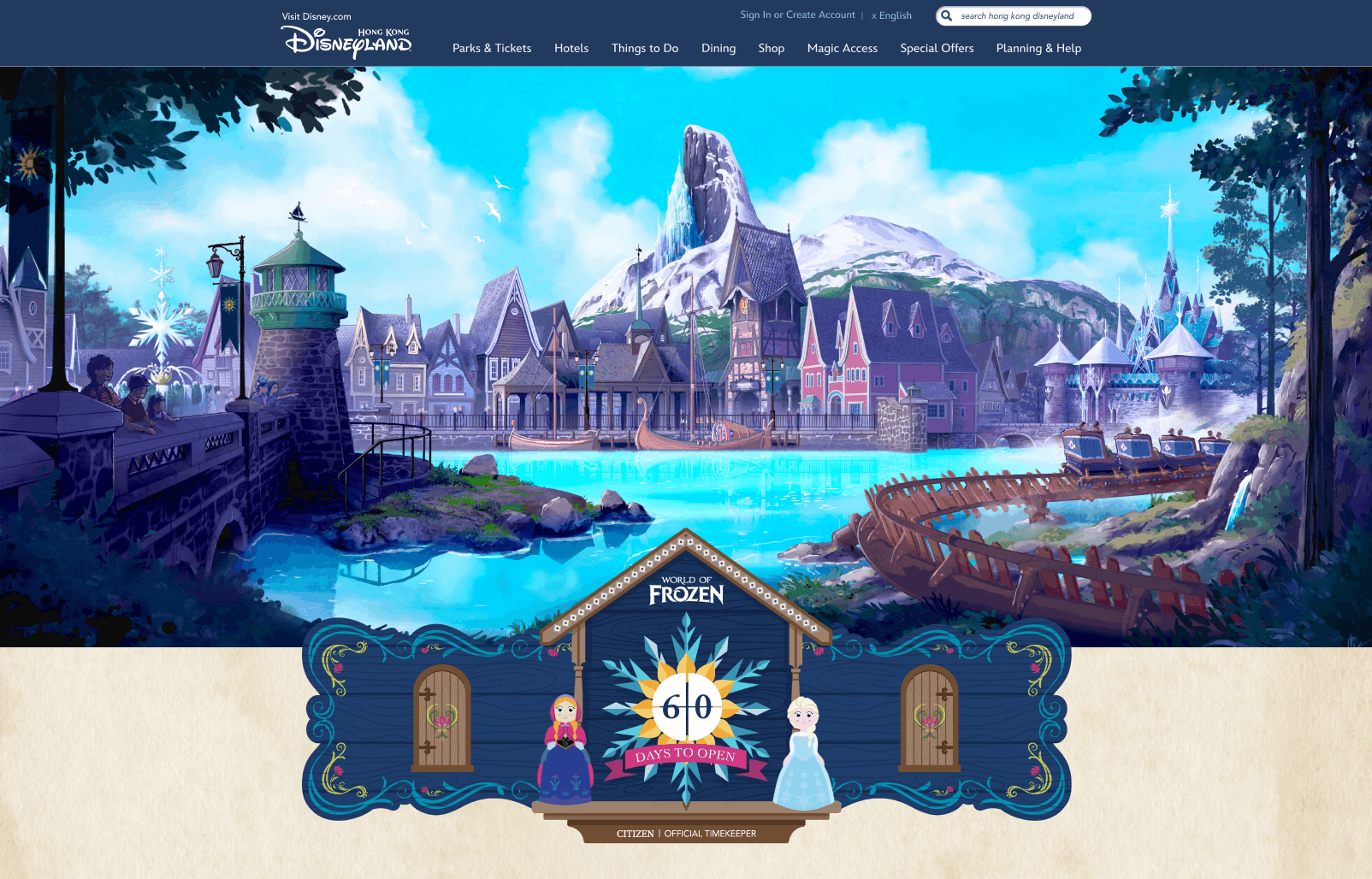 The clock temporarily lived on the Hong Kong Disneyland home page and is still live on a web page dedicated to the World of Frozen.